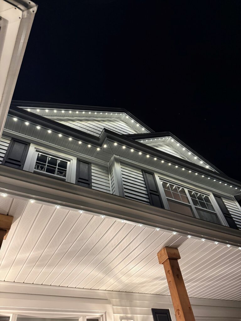 We install permanent exterior Gemstone lighting systems designed to enhance your home or commercial property. These low-profile lights are seamlessly integrated into your soffits for a clean, modern look while delivering reliable performance in all seasons. Our team ensures every installation is precise, secure, and built to last.